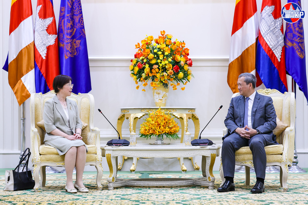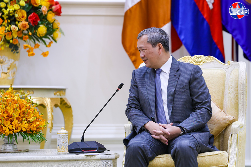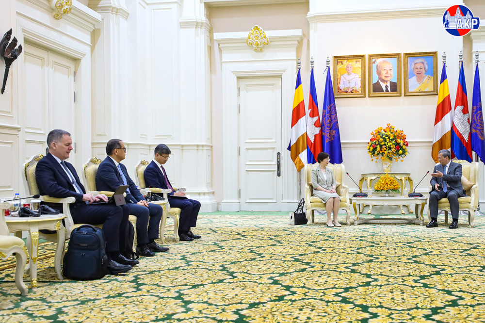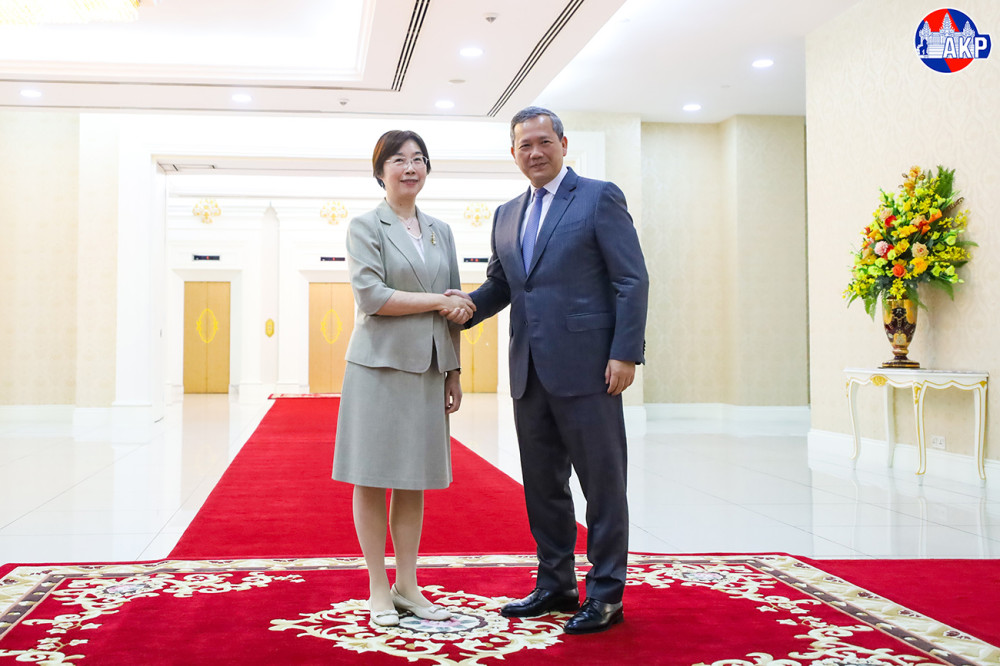 柬埔寨首相洪玛奈于年4月1日上午在和平大厦会见亚洲基础设施投资银行(AIIB)行长兼董事会主席邹加怡,双方进行了礼节性拜会并就相关工作交换意见。